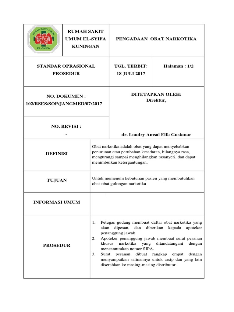 Doc Pelayanan Resep Narkotika Standar Operasional Prosedur Deady Nurdianto Academia Edu